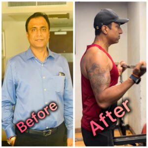 Through personalised coaching, structured routines, and simple nutrition guidelines, Ajay started gaining momentum. His strength increased, his muscle definition improved, and he naturally adopted healthier habits. Today, he carries a leaner physique, visible muscle tone, and a far more energetic lifestyle.